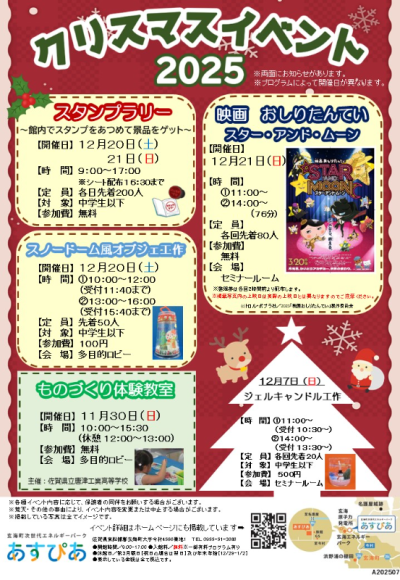 あすぴあでは、12月20日(土)21日(日)の2日間