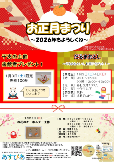 あすぴあでは、1月3日(土)4日(日)の2日間